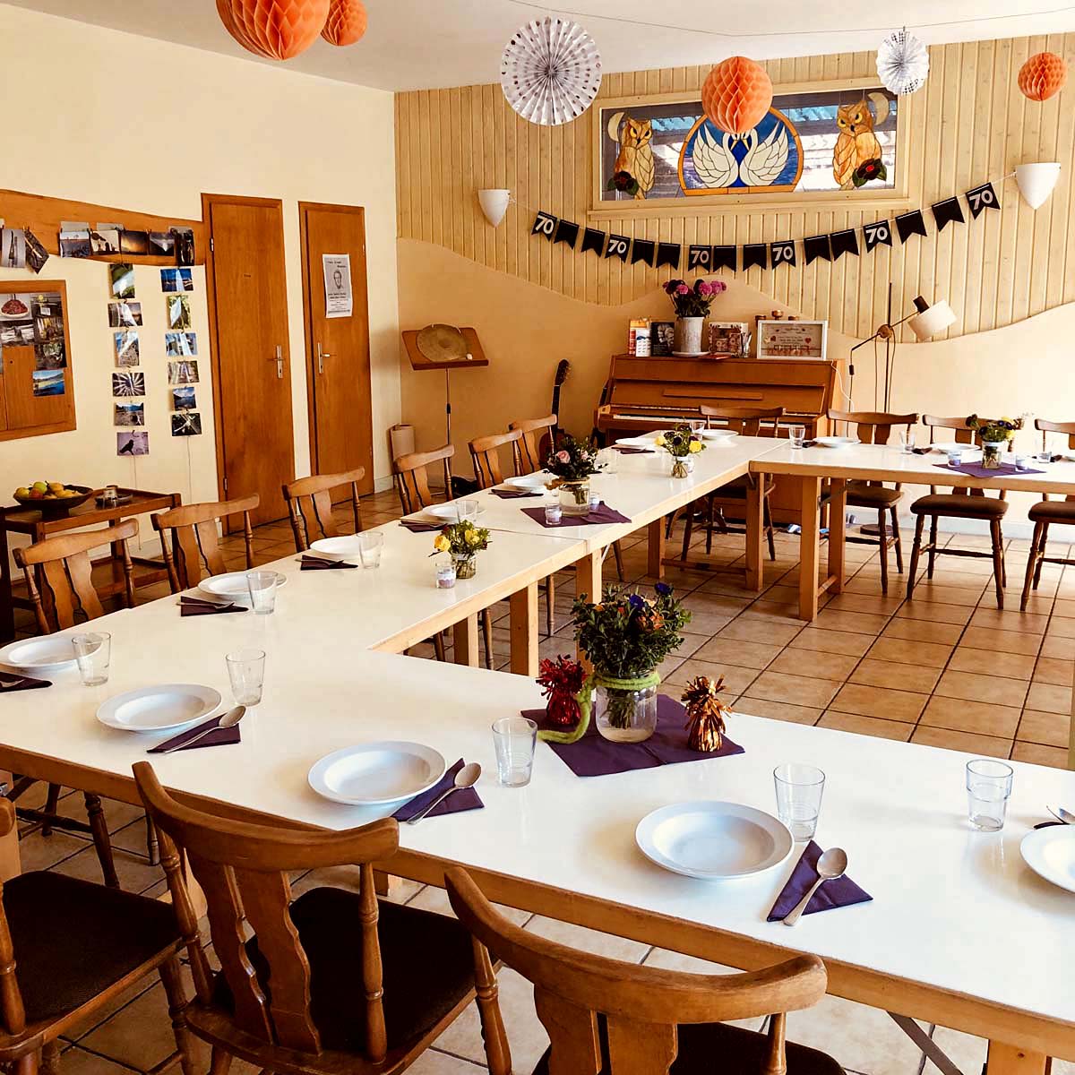 - Musikgruppen, Chöre & Orchester – großer Speisesaal mit Klavier für Proben